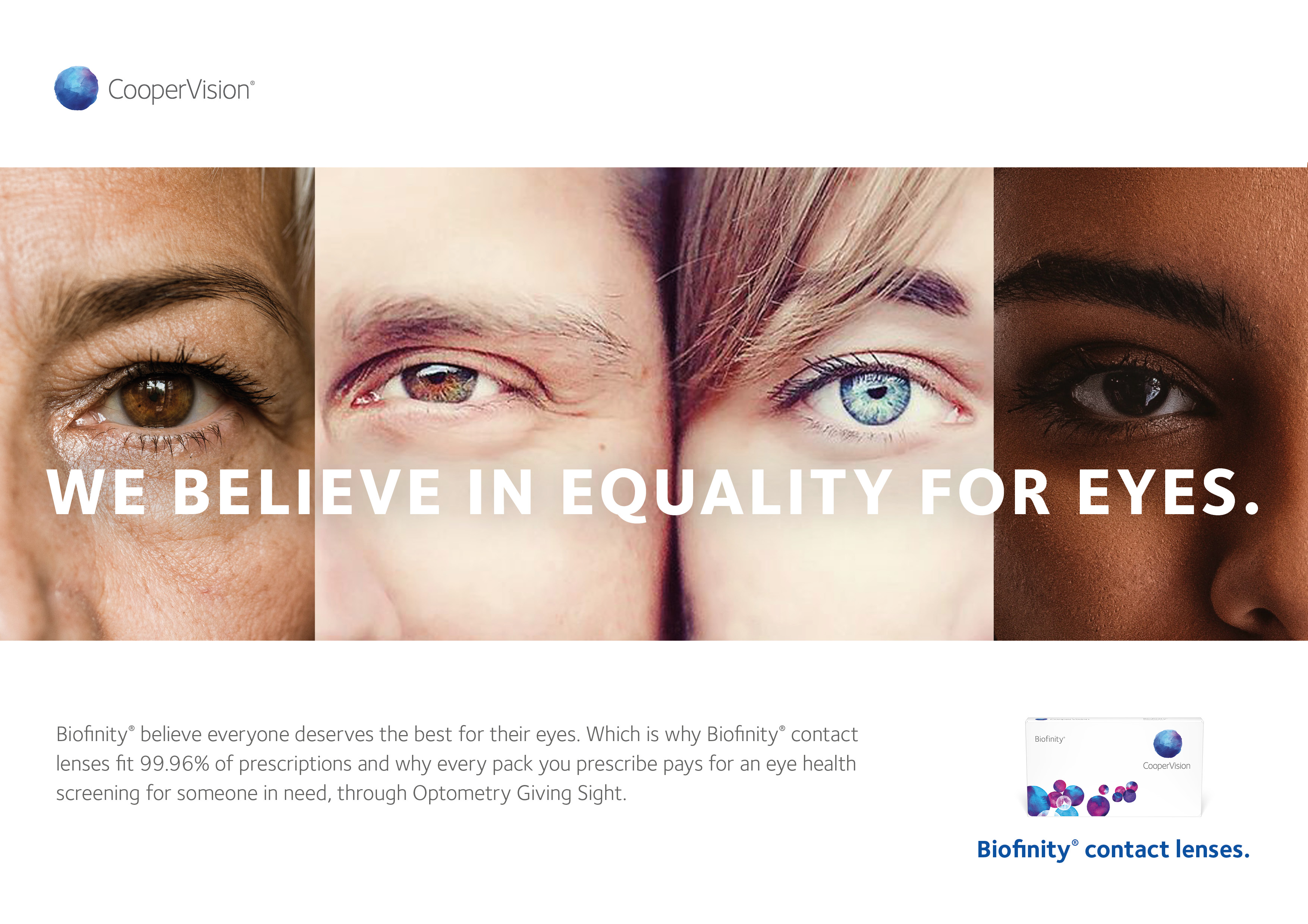 When CooperVision needed a new platform for Biofinity we landed on an emotive territory. Biofinity fits virtually every possible prescription, so it can improve more people’s vision than any other contact lens. To further amplify the equality message, we partnered with Optometry Giving Sight, a charity that provides eyecare solutions for under-served communities.